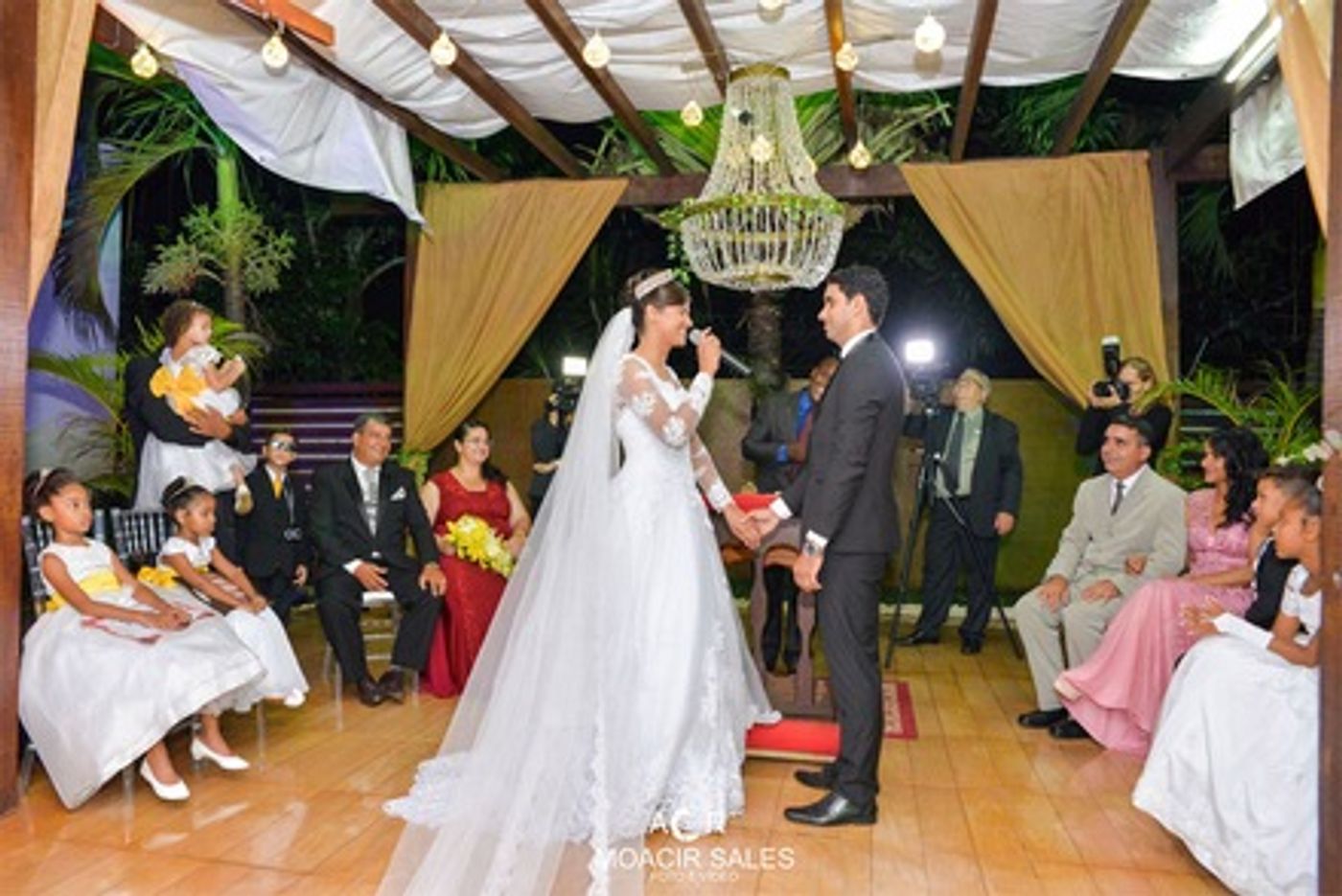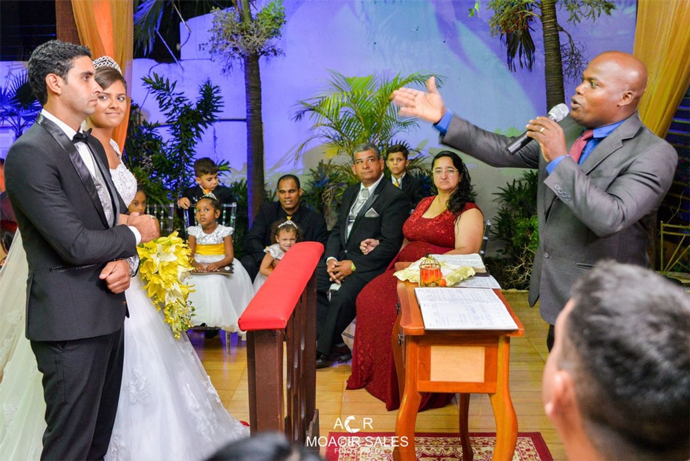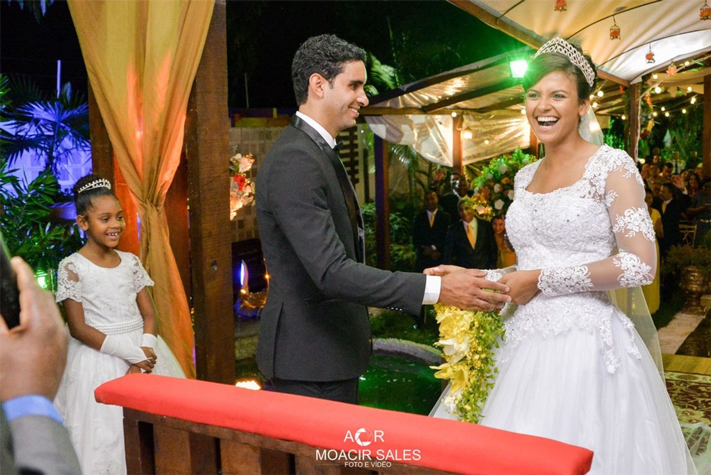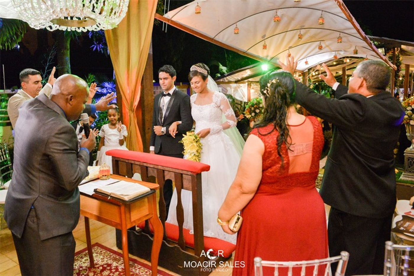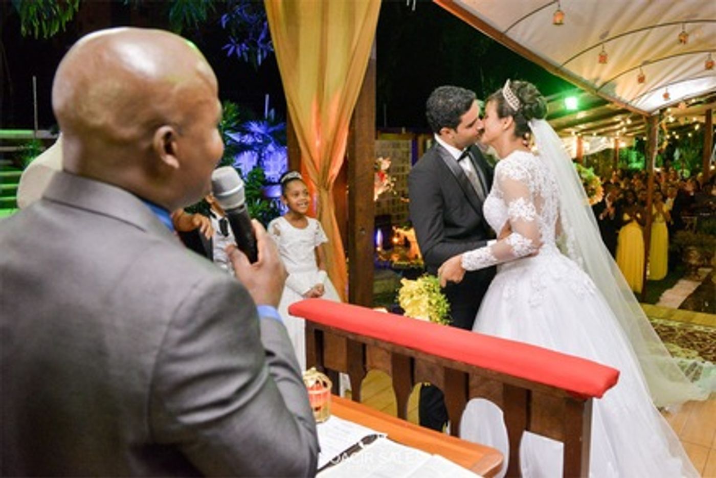 A começar pela grande bênção que receberam de um tempo lindo sem chuva, perfeito para uma cerimônia ao ar livre. E por falar na cerimônia, que belas palavras o pastor Willian transmitiu ao casal e todos que lá estavam presenciando a felicidade dos noivos.